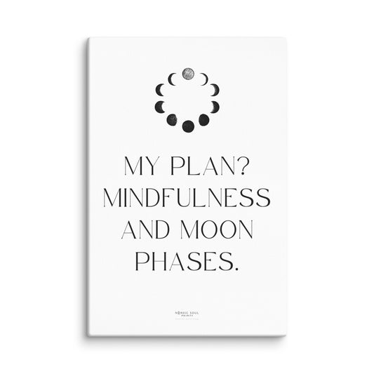Canvas – "My plan? Mindfulness and moon phases." (16x24, 18x24, 24x36)